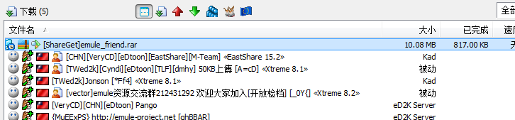 PS:下载列表里的 [ShareGet]emule_friend.rar 是一个断头档,用来保持驴友联系的,可以自行去百度了解一下